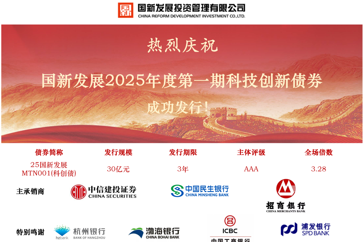 國(guó)新發(fā)展成功發(fā)行30億元科技創(chuàng)新債券